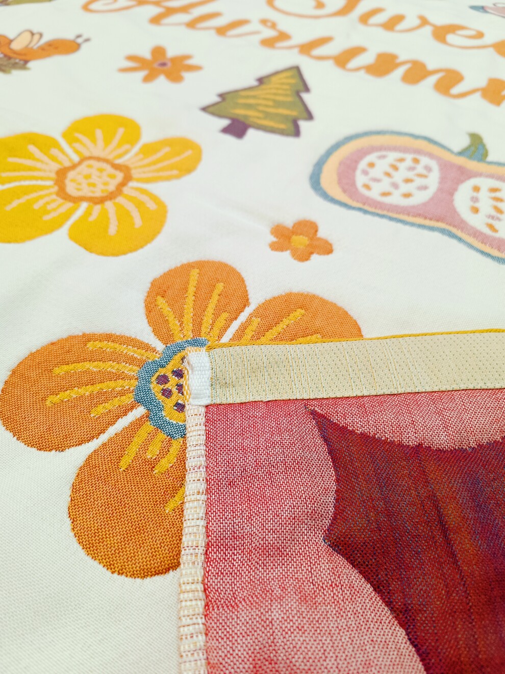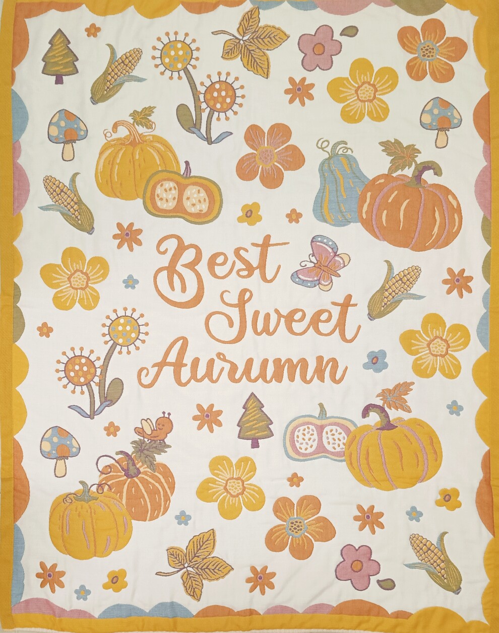 Погрузите детскую в уют золотой осени: мягкое покрывало из 100% хлопка украшено игривыми листочками и милыми тыквами — словно шуршание парка и аромат пряной тыквы в одном пледе 🍂✨