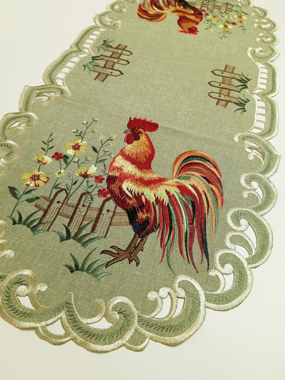 Пасхальная дорожка с вышивкой гладью: петух — вестник рассвета 🐓🌅✨