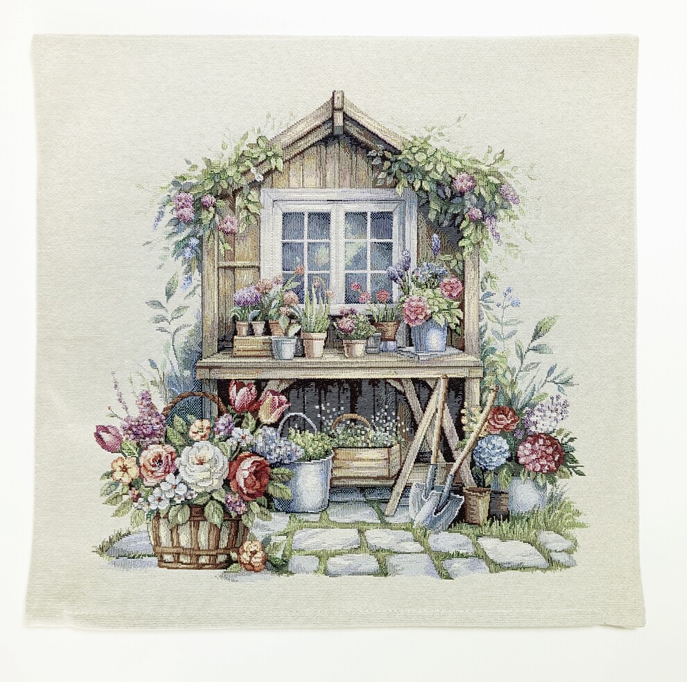 Гобеленовая Наволочка "Садовый домик"🏡🌿 45x45 см