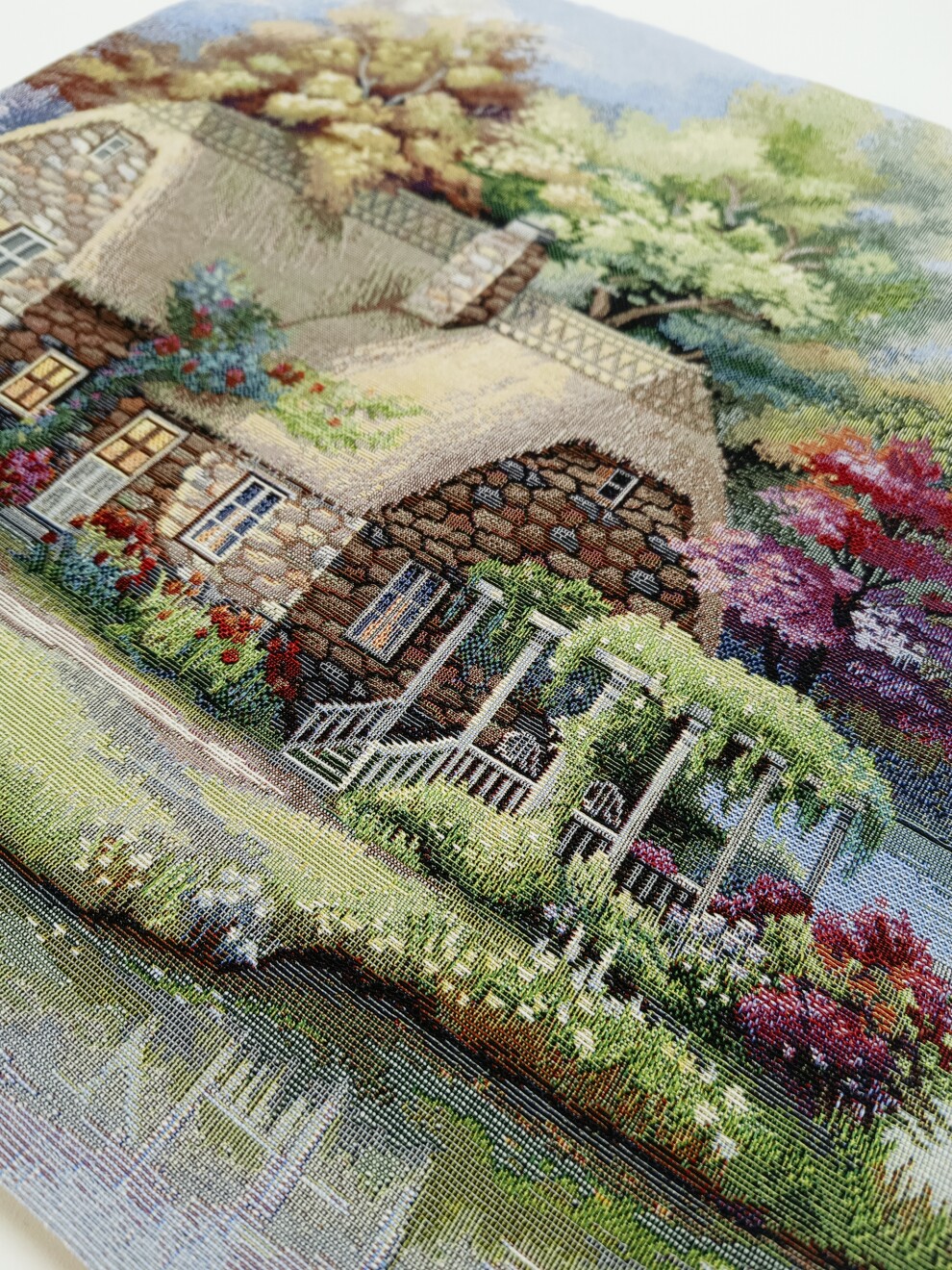 Превратите диван или кресло в уголок тихого счастья: на плотном гобелене оживает миниатюрный садовый домик. Это как картина на ткани — мягкая, тактильная и очень уютная ✨🧵