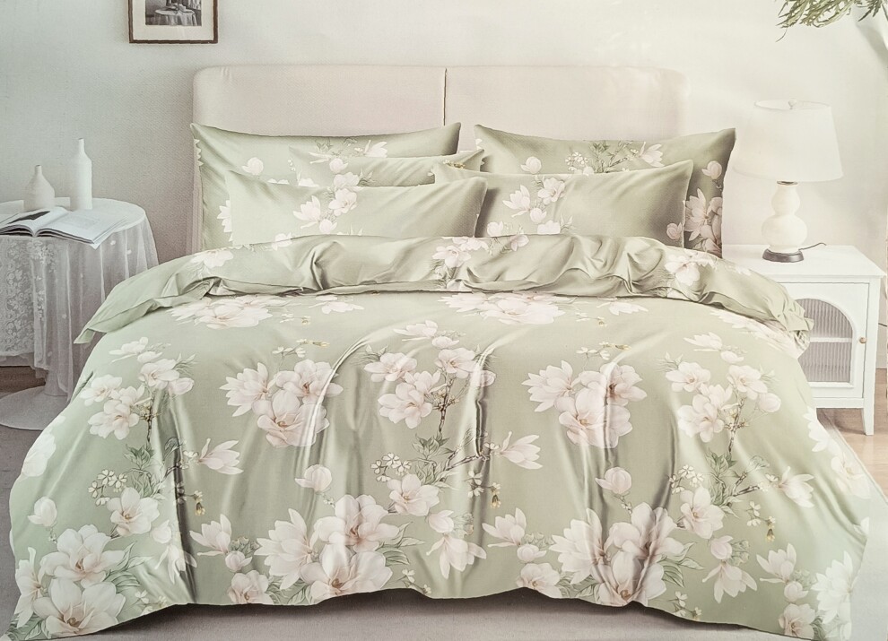Погрузитесь в атмосферу нежности с нашим новым комплектом. Натуральный хлопковый сатин дарит благородный блеск и невероятную мягкость шелка. Рисунок с пышными цветами на оливковом фоне наполнит спальню весенним теплом и уютом. Ваше идеальное утро начинается здесь! ✨🍃