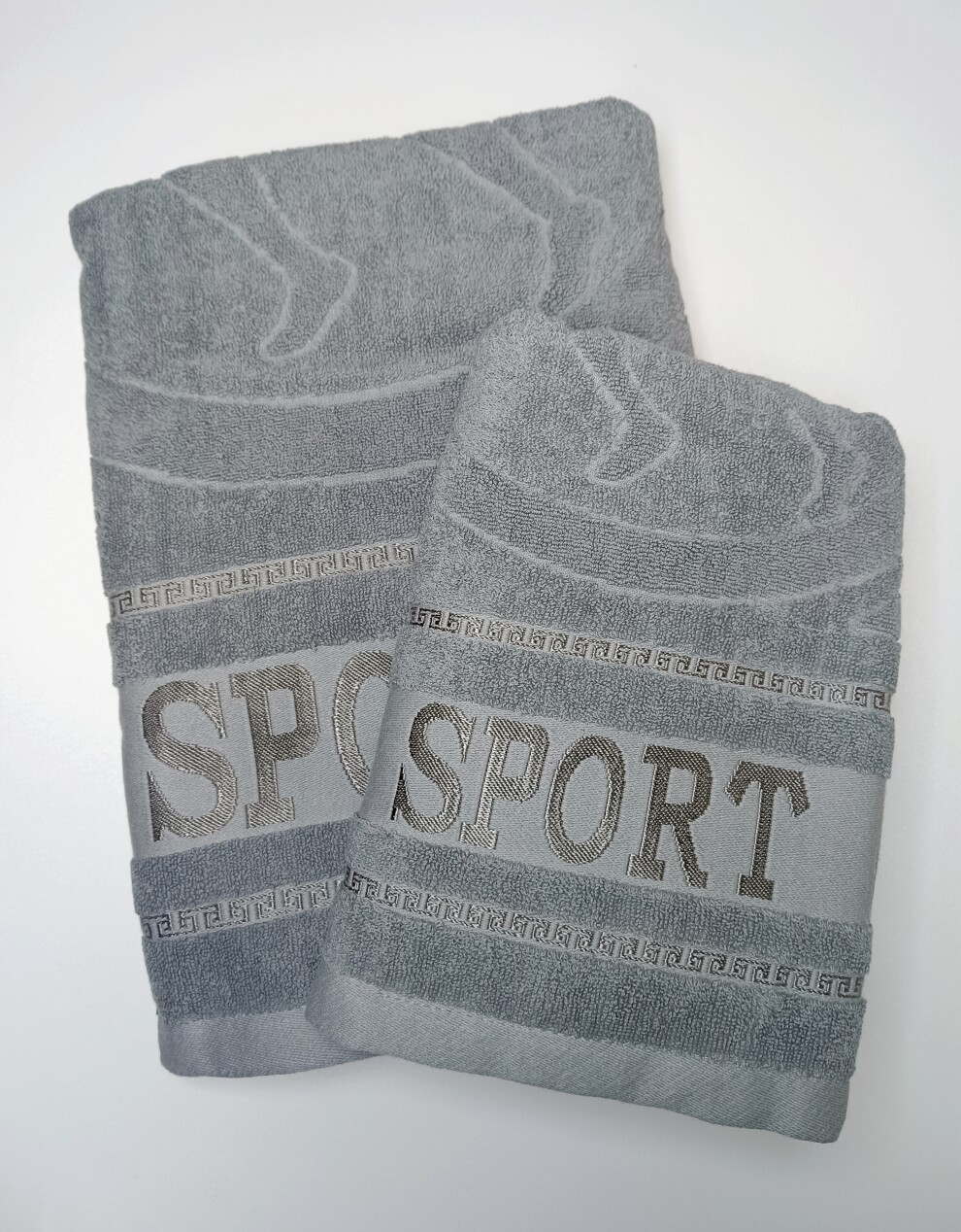 Комплект полотенец Банное + Лицевое "Sport". Цвет: серый. Махра, хлопок 100%. Размер лицевого: 50х90 см. Размер банного: 140x70 см.