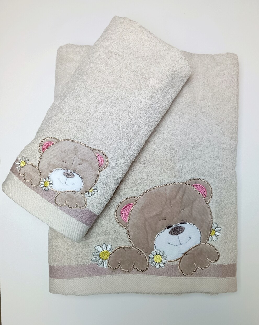 Комплект полотенец из хлопка Банное + Лицевое "Медвежонок"