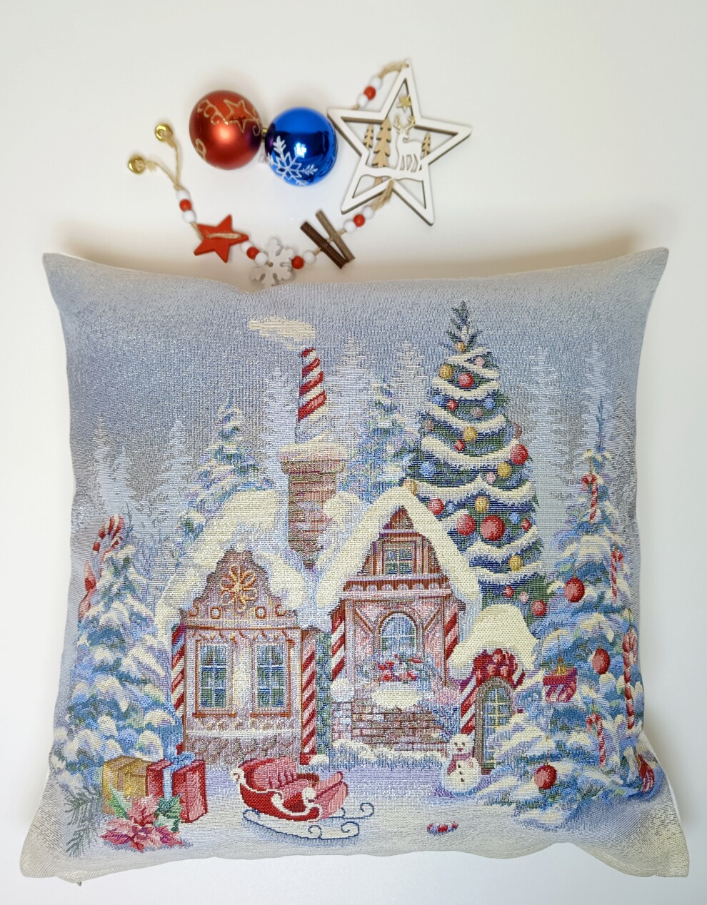 Наволочка на думку гобеленовая "Пряничный домик"🎄🍪🏠