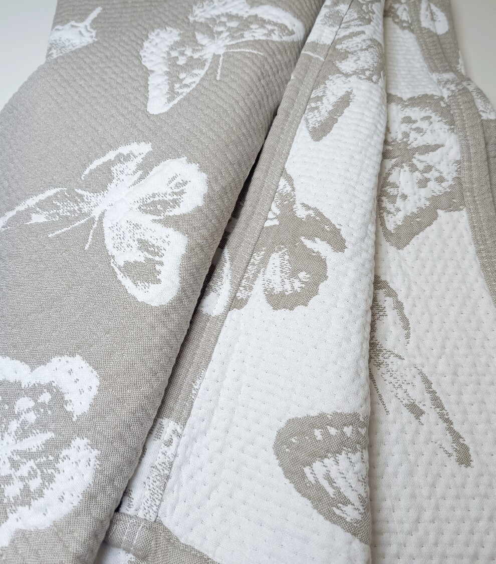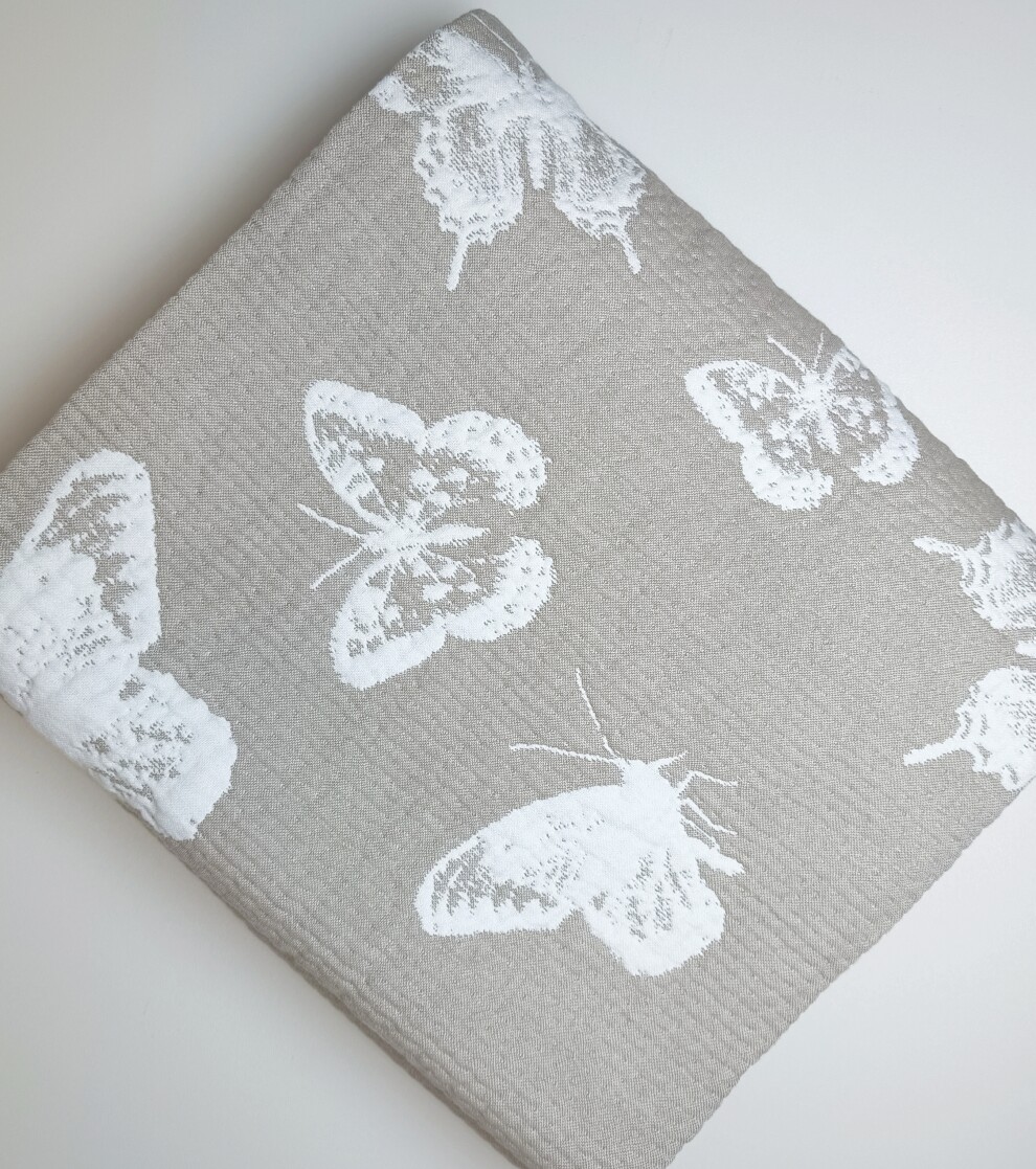 Плед 150x210 см "Бабочки" 🦋🦋🦋. Хлопок 100%. Цвет - коричневый, бежевый