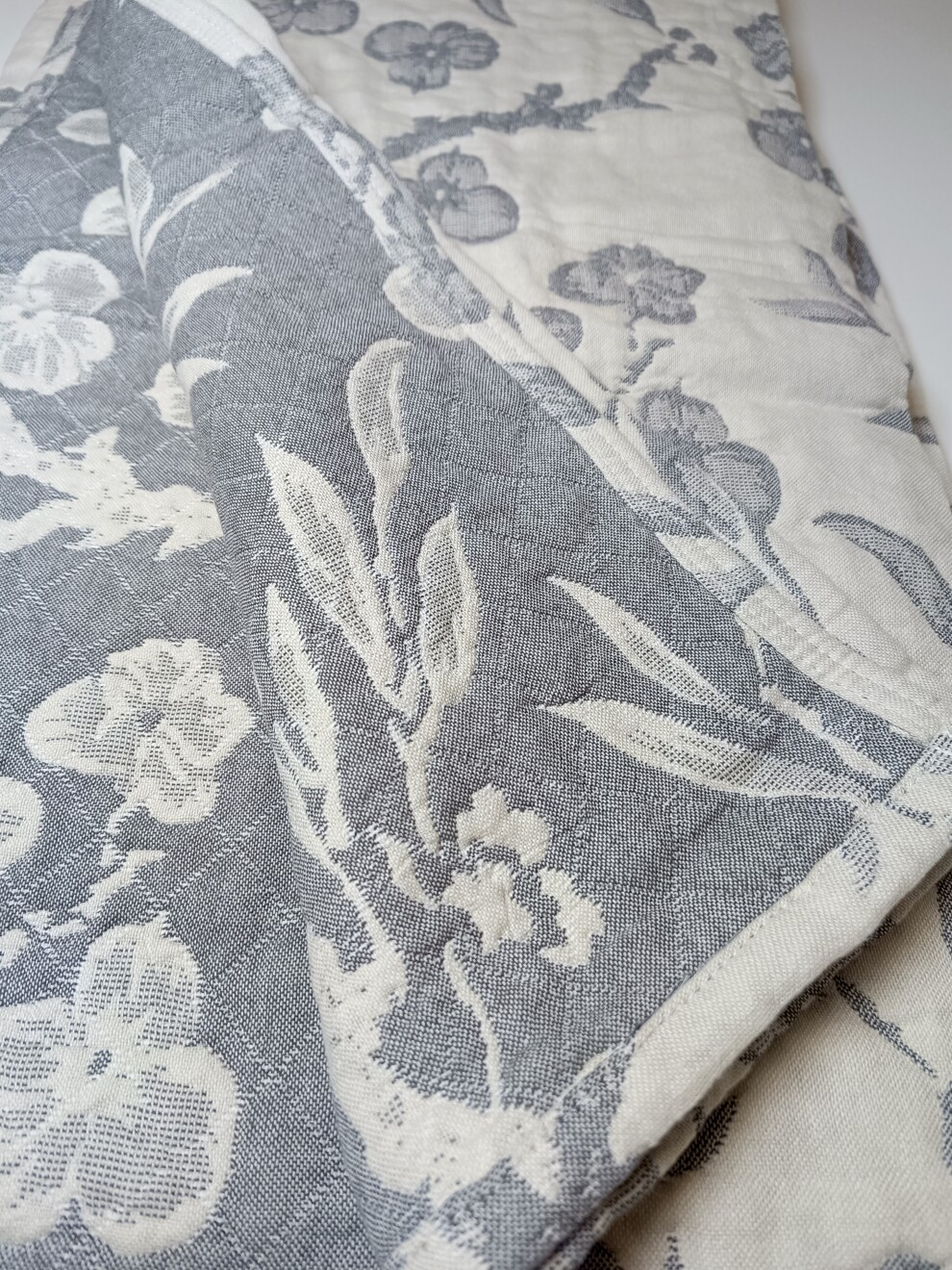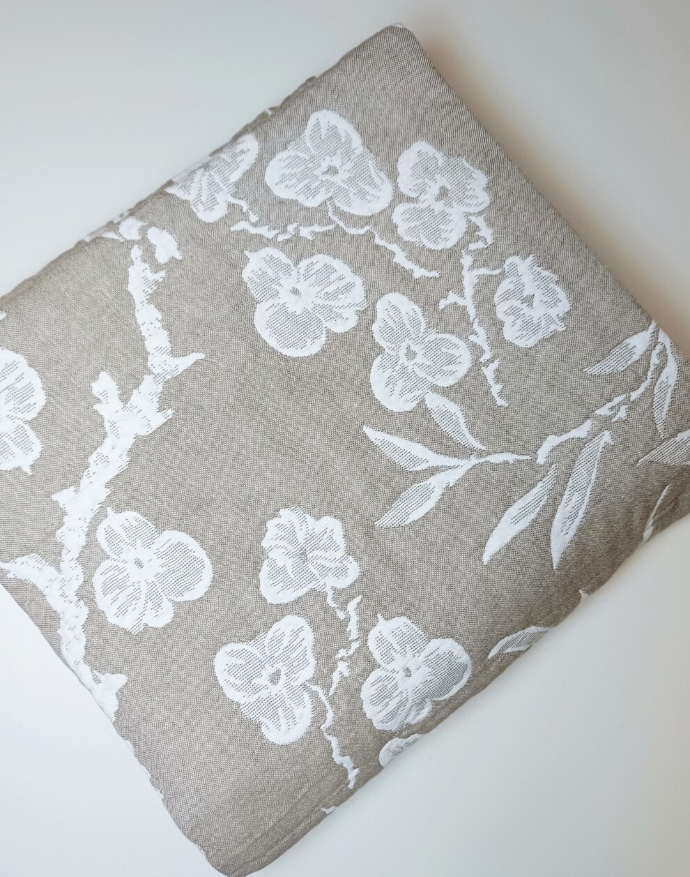 Плед 150x210 см "Сакура" 🌺. Хлопок 100%. Цвет - серый, бежевый