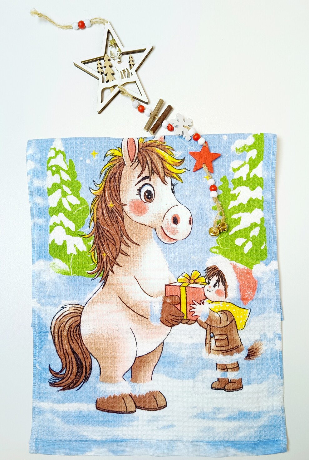 Вафельное полотенце "Конь". Размер 50x80 см.
